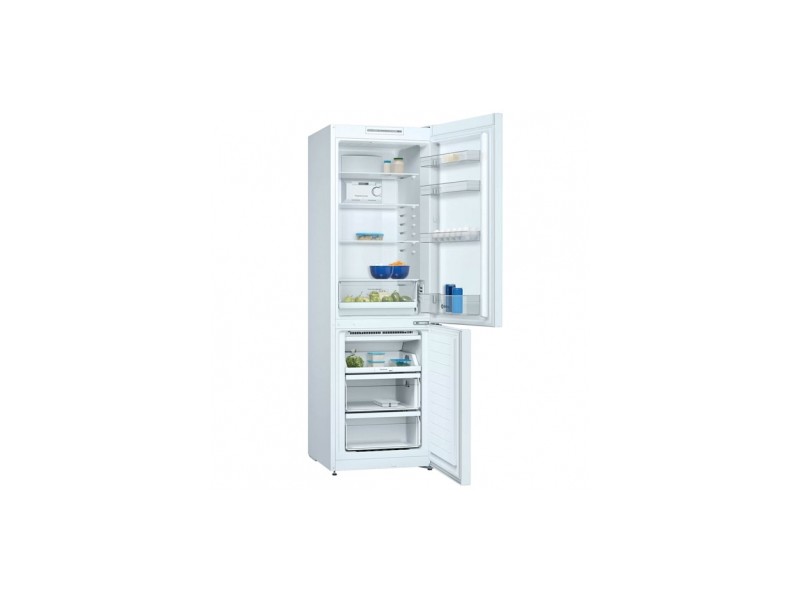 Combi No Frost, Blanco, Full Skin Condenser, Cajón Fresh para frutas y verduras, Visualización interior de la temperatura mediante LED, Iluminación LED, Bandejas de cristal de seguridad, Cajón EasyAccess acceso directo al congelador, Control electrónico e independiente de la temperatura, Descongelación y evaporación automática, Congelación "Súper" con autodesconexión, Alarma óptica y acústica avería y temperatura, Posibilidad de instalación en pareja con otro combinado del mismo modelo, Dimensiones (Al x An x Fn): 186 x 60 x 66 cm, Clasificación energética E (en el rango de la A a la G).