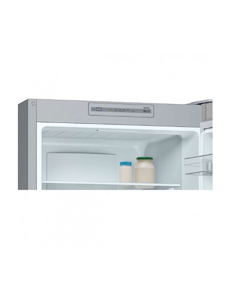 Combi No Frost, 193 l en frigorífico, 89 l en congelador, Acero mate antihuellas, Tiradores horizontales integrados, Cajón Fresh para frutas y verduras, Visualización interior LED, Funciones especiales: función Eco, Iluminación LED, Bandejas de cristal de seguridad, Cajón EasyAccess, Control electrónico e independiente de las temperaturas, Descongelación y evaporación automática en ambos compartimentos, Congelación "Súper", Alarma óptica y acústica de avería y de temperatura, Dimensiones (al x an x fnd sin tirador): 176 x 60 x 66 cm, Clasificación energética E (dentro del rango de A a G).