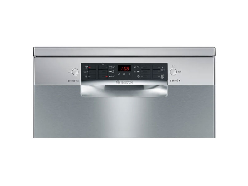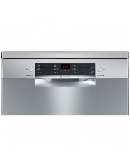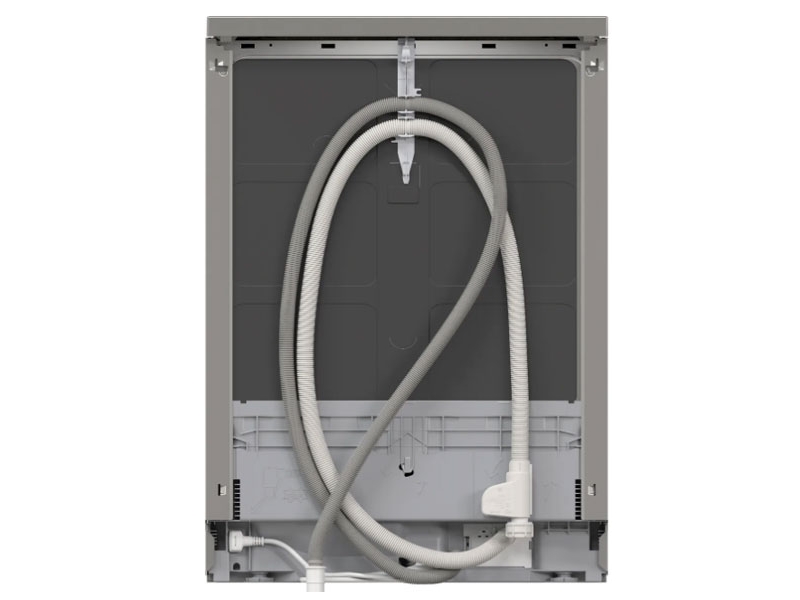 Características TécnicasGeneralTipo de instalación: Libre instalación con posibilidad de instalación bajo encimeraTipo de construcción: Libre instalaciónColor: Acero antihuellasTerminación/material frontal: Acero inoxidable cromo pintadoTapa superior desmontable: SíPuerta deslizante: NoInstalación en columna: NoZócalo regulable: NoClase de eficiencia energética: E Dentro del rango de clases de eficiencia energética de A a G.Consumo de energía por 100 ciclos programa ECO: 94 kWh/100 ciclos, Consumo de energía en kWh por 100 ciclos (en el programa Eco 50 °C)Consumo de energía del programa eco en kWH por ciclo: 0.937 kWh/cycleConsumo de agua programa ECO por ciclo: 9,5 l en el programa Eco 50 °CClase de nivel de ruido: CNivel de ruido: 46 dB(A) re 1pWDuración del programa: 3:30 h del programa Eco 50 °CNº máx. servicios: 13Programas estándar: Programa intensivo, Automático 45-65ºC, Programa eco, Copas, Rápido 65ºC, PrelavadoFunciones adicionales: VarioSpeedPlus, Higiene Plus, Extra secado, Programa especial: limpieza de la cubaAquaStop: SíSistema de secado: Intercambiador de calorRackMatic: SíMaterial de la cuba: PlásticoSistema de cestas y cubiertos: Tipo de cestasGran flexibilidad con cestas superior VarioFlex: 3ª Cesta superiorTercera Bandeja VarioDrawer: ServiciosBandeja para cubiertos: Número de varillas abatibles en la cesta superior 2Número de varillas abatibles en la cesta inferior: 4Número de soporte para tazas en la cesta superior: 2Protección anti resbalo en la parte superior: NoSoporte para copas en la cesta inferior: NoCesta superior regulable en altura: Rackmatic 3 posicionesDimensiones y pesoDimensiones del aparato: 845 x 600 x 600 mmMedidas del producto embalado: 880 x 660 x 680 mmPeso neto: 51.9 kgFondo con puerta abierta a 90 grados: 1155 mmAltura de la encimera extraíble: 30 mmEquipamientoOpenAssist: NoDisplay TFT: NoInterior light: NoTiempo máximo de programación diferida: 24 hTecnología de limpieza y sensoresProtección del cristal: válvula de ajuste de la dureza del agua: NoMotor EcoSilence: SíAquaSensor: SíSistema de gestión del agua: No"Todo en 1": detección automática de detergentes combinados: SíConectividadHome Connect: NoSeguridadAquaStop: SíBloqueo de seguridad: Bloqueo de teclas- Color