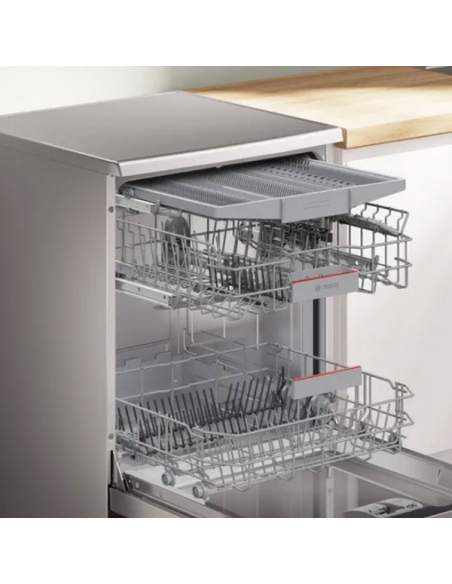 Lavavajillas Libre Instalación, Color Inox, Dimensiones del aparato (AltoxAnchoxFondo): 845 x 600 x 600 mm, Clase de eficiencia energética: E (en el de A a G), Consumo de agua programa ECO por ciclo en el programa Eco 50 °C: 9.5 l, Clase de nivel de ruido: C, Sistema de secado: Intercambiador de calor, Gran flexibilidad con cestas superior VarioFlex, AquaStop: Sí, 3ª bandeja VarioDrawer, Motor EcoSilence, Función Extra Secado, Cesta superior RackMatic 3 niveles, Función HigienePlus con hasta 70ºC.