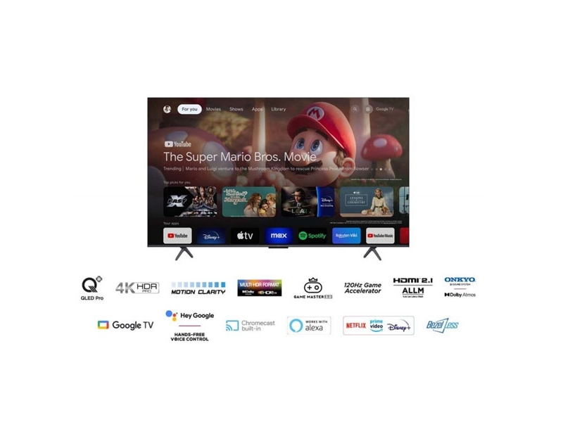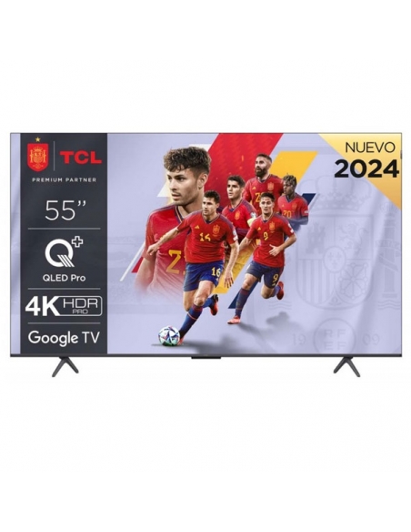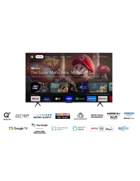 Tv Led 55", 4K UHD, Smart TV, QLED PRO, 4K HDR PRO, Motion Clarity, Multi HDR format, Dolby Vision & HDR10+, Game Master 3.0, HDMI 2.1, 2.1 ONKYO Dolby Atmos, Google TV, Google Assistant manos libres, Miracast & Chromecast, Netflix, Amazon Prime, Disney+, Metal fino sin marco, Dimensiones con Soporte(AnchoxAltoxFondo): 1224 / 770 / 292 mm, Soporte (AnchoxFondo): 925x292 mm, Dimensiones sin Soporte(AnchoxAltoxFondo): 1224x708x8-72mm.